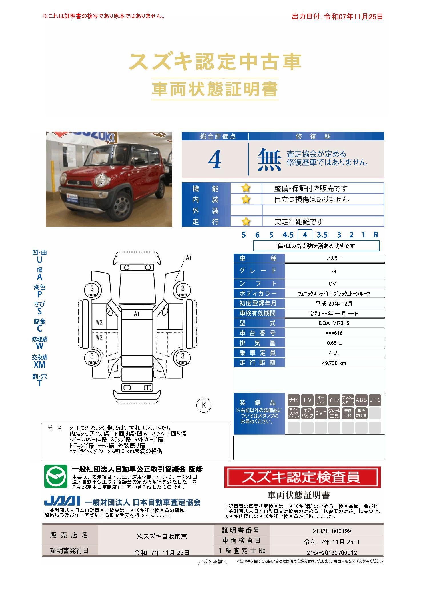 車両保証(ハスラー G:(株)スズキ自販東京 スズキアリーナ足立)