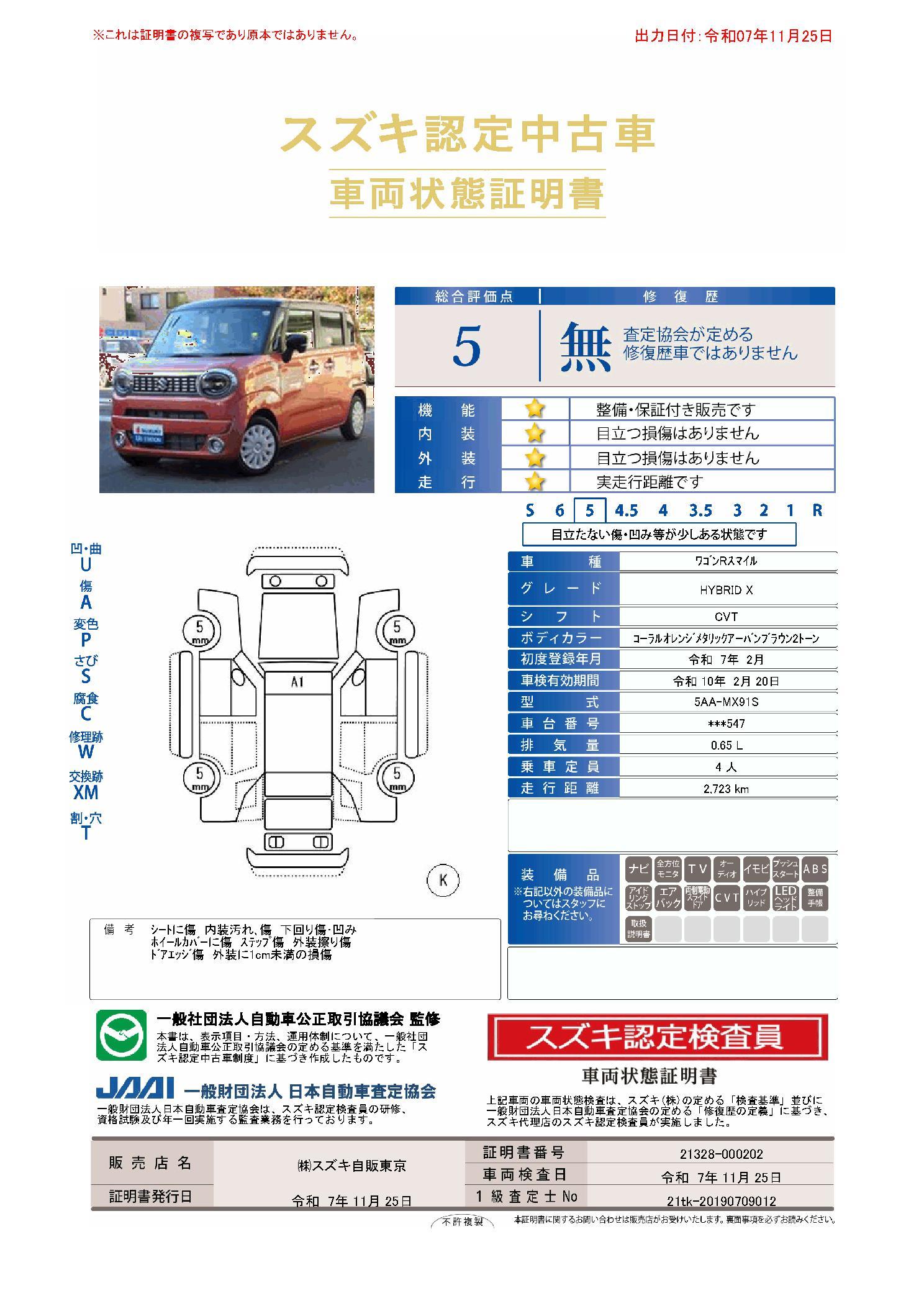 車両保証(ワゴンRスマイル ハイブリッドX:(株)スズキ自販東京 スズキアリーナ足立)