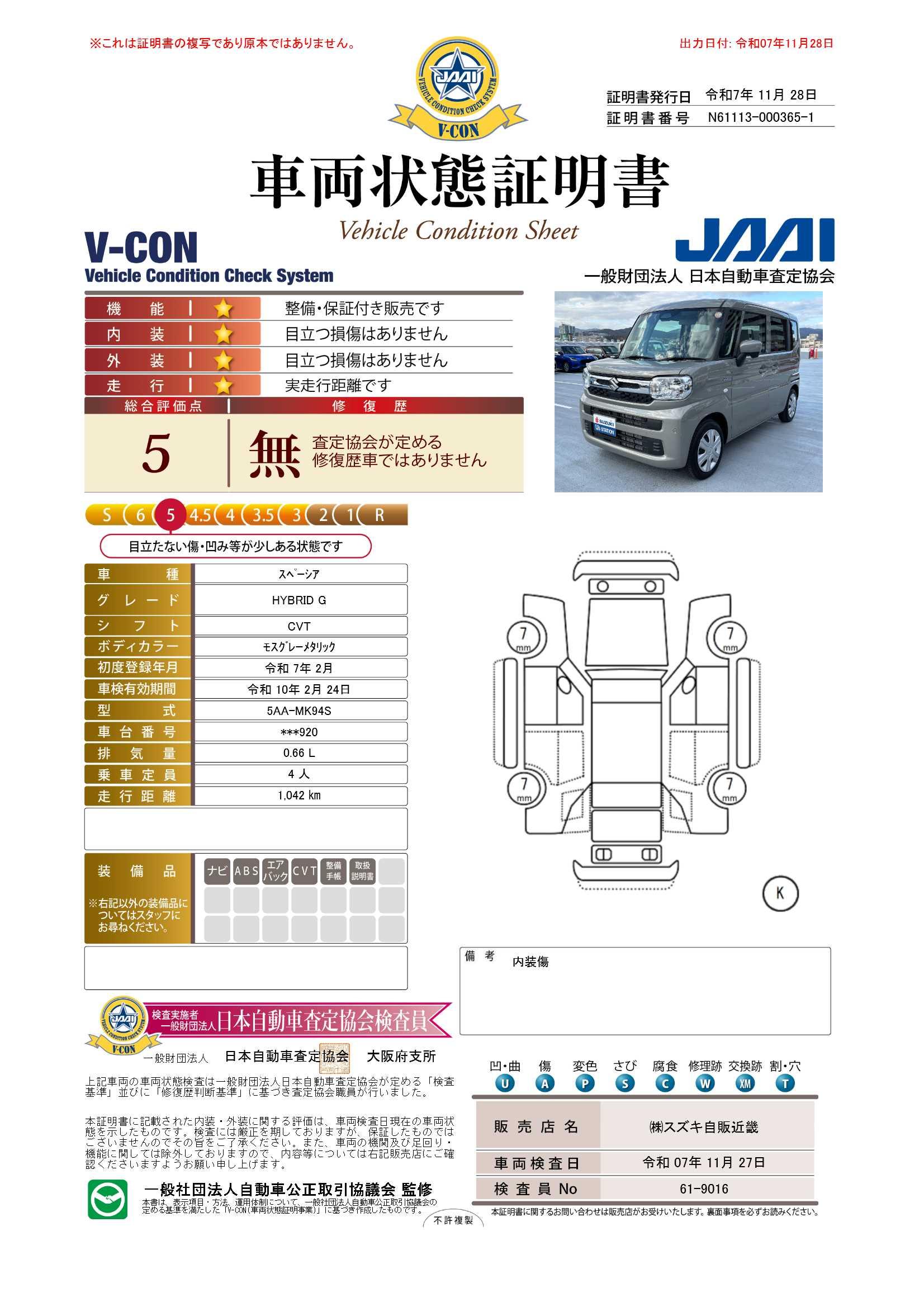 | 車両状態評価書 | ※クリックすると開きます![]() |