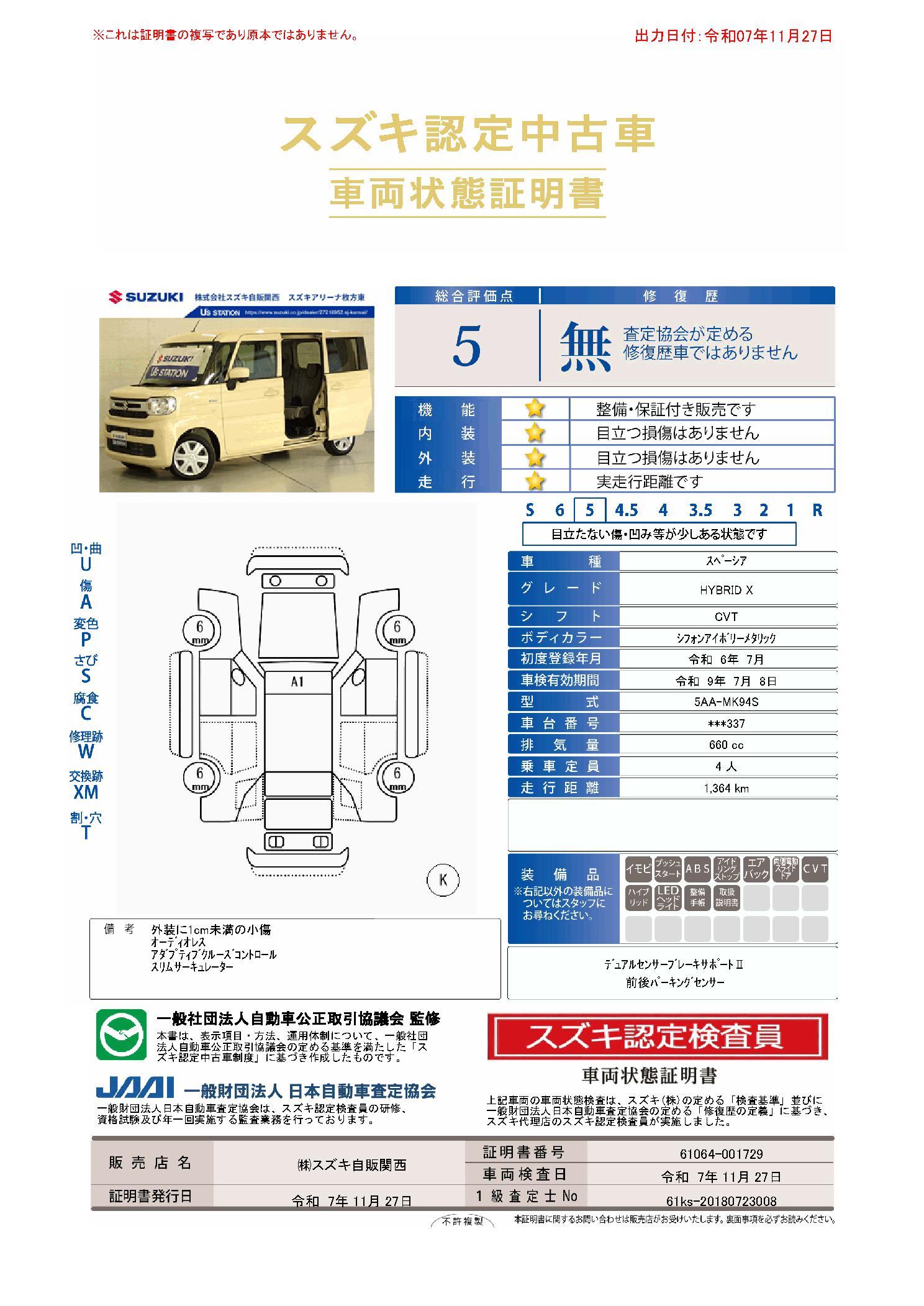 車両保証(スペーシア ハイブリッドX:(株)スズキ自販関西 スズキアリーナ枚方東/U’s STATION枚方)