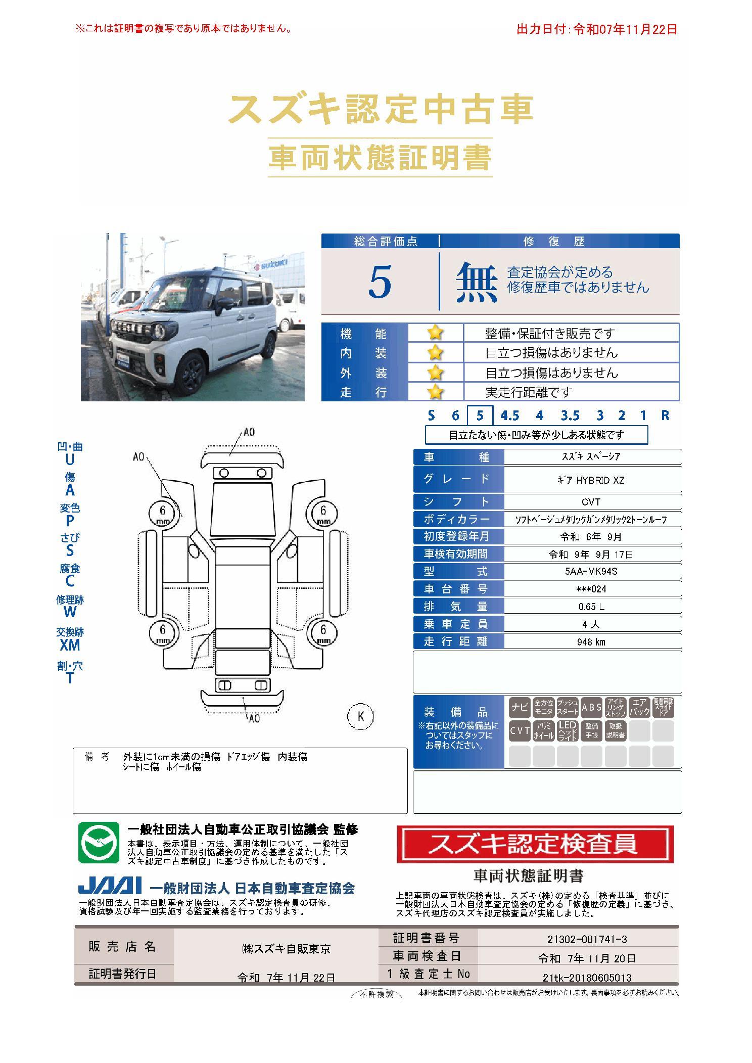 車両保証(スペーシア その他/独自仕様/表記なし:(株)スズキ自販東京 スズキアリーナ練馬西/練馬西センター)