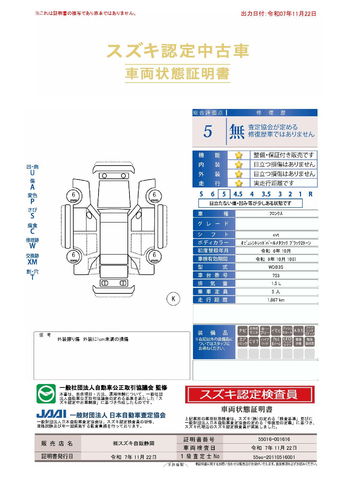| 車両状態評価書 | ※クリックすると開きます![]() |