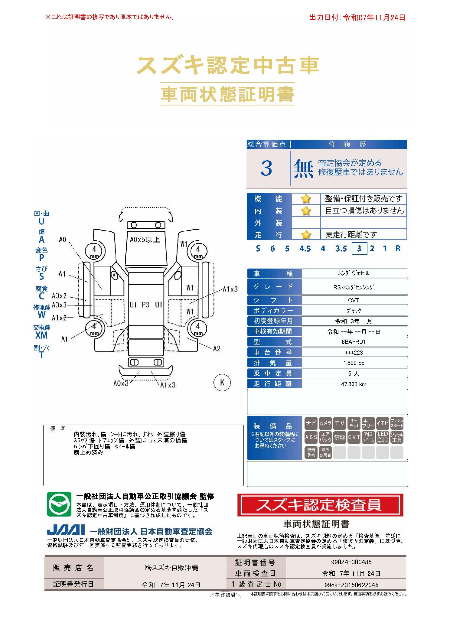 車両保証(ヴェゼル RS・ホンダセンシング:(株)スズキ自販沖縄 U’s STATION牧港)