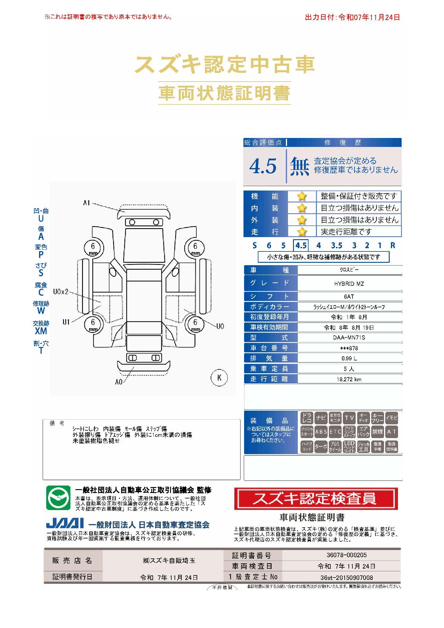 車両保証(クロスビー ハイブリッドMZ:(株)スズキ自販埼玉 スズキアリーナ浦和美園)