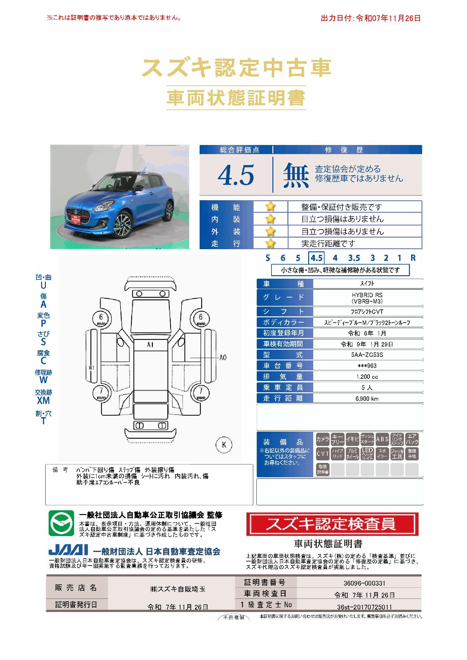 車両保証(スイフト ハイブリッドRS:(株)スズキ自販埼玉 スズキアリーナさいたま北)