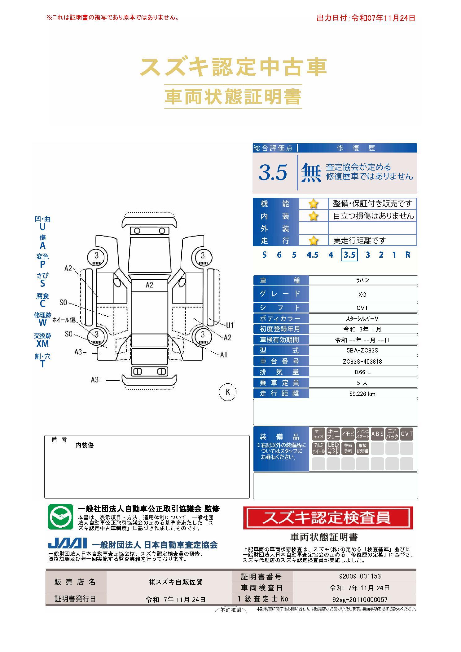 | 車両状態評価書 | ※クリックすると開きます![]() |