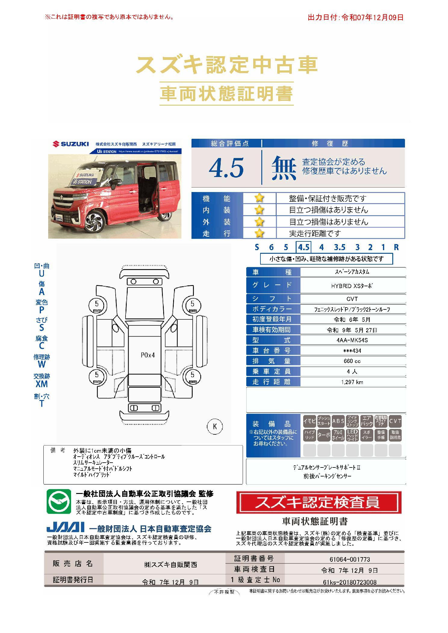 車両保証(スペーシアカスタム ハイブリッドXSターボ:(株)スズキ自販関西 スズキアリーナ松原)