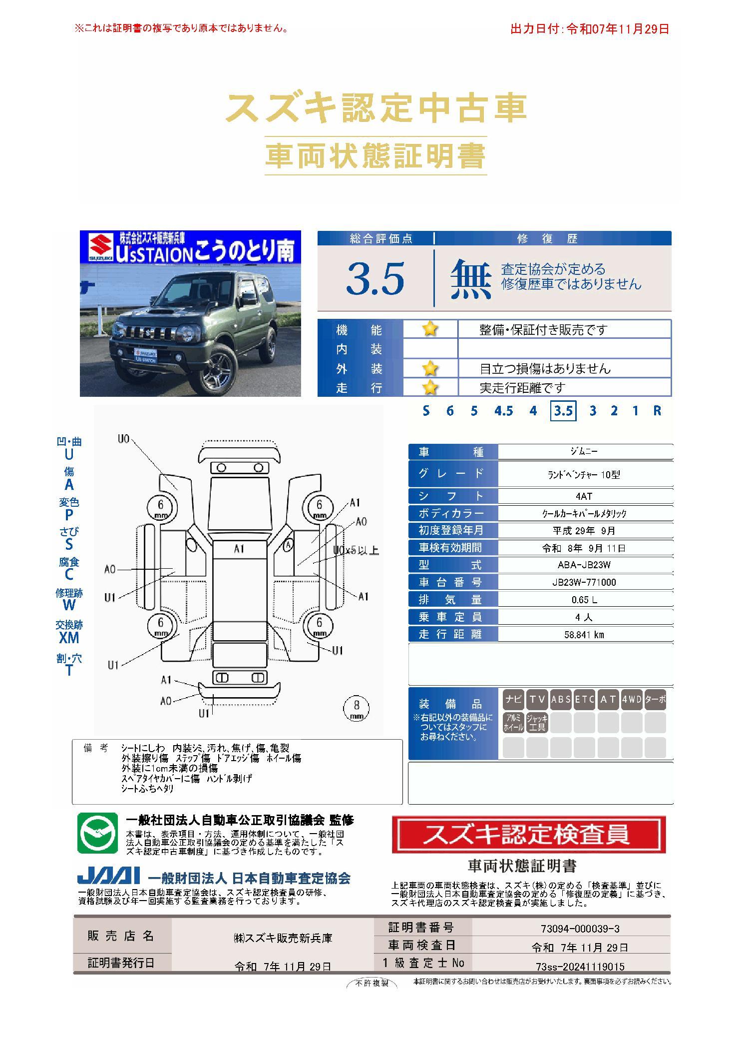 | 車両状態評価書 | ※クリックすると開きます![]() |