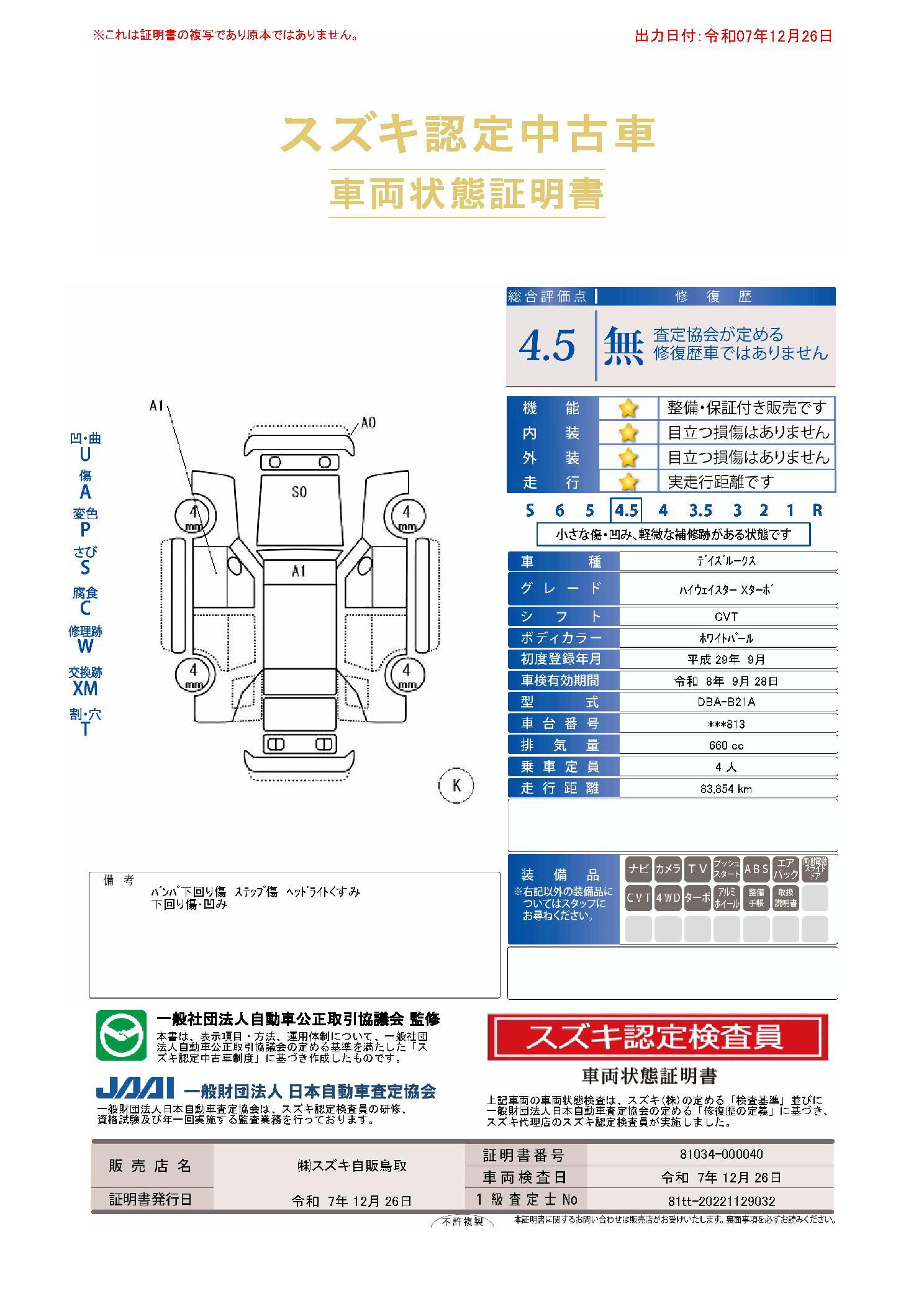 車両保証(デイズルークス ハイウェイスター Xターボ:(株)スズキ自販鳥取 U’s STATION丸山)