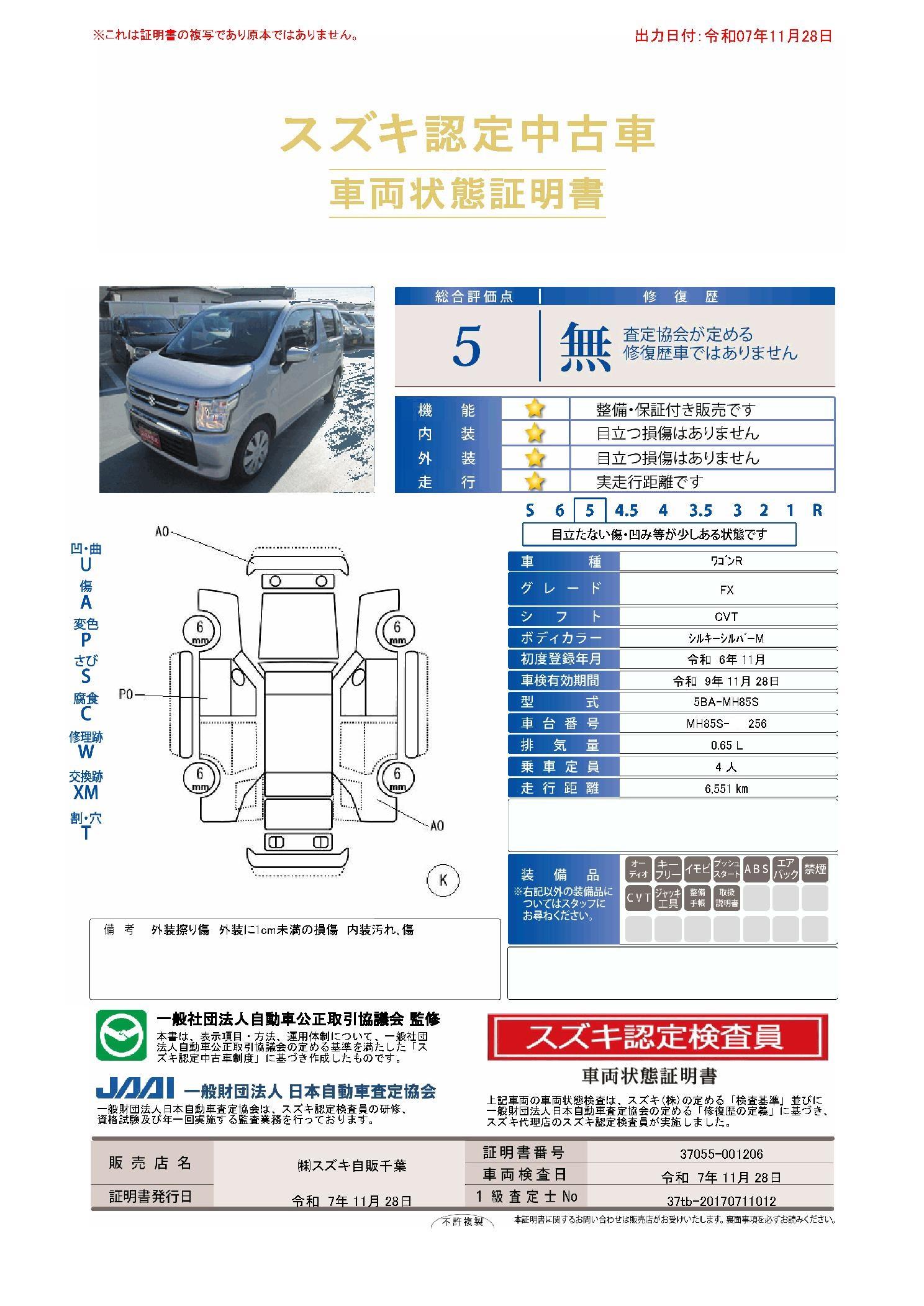 車両保証(ワゴンR FX:(株)スズキ自販千葉 スズキアリーナ松戸)