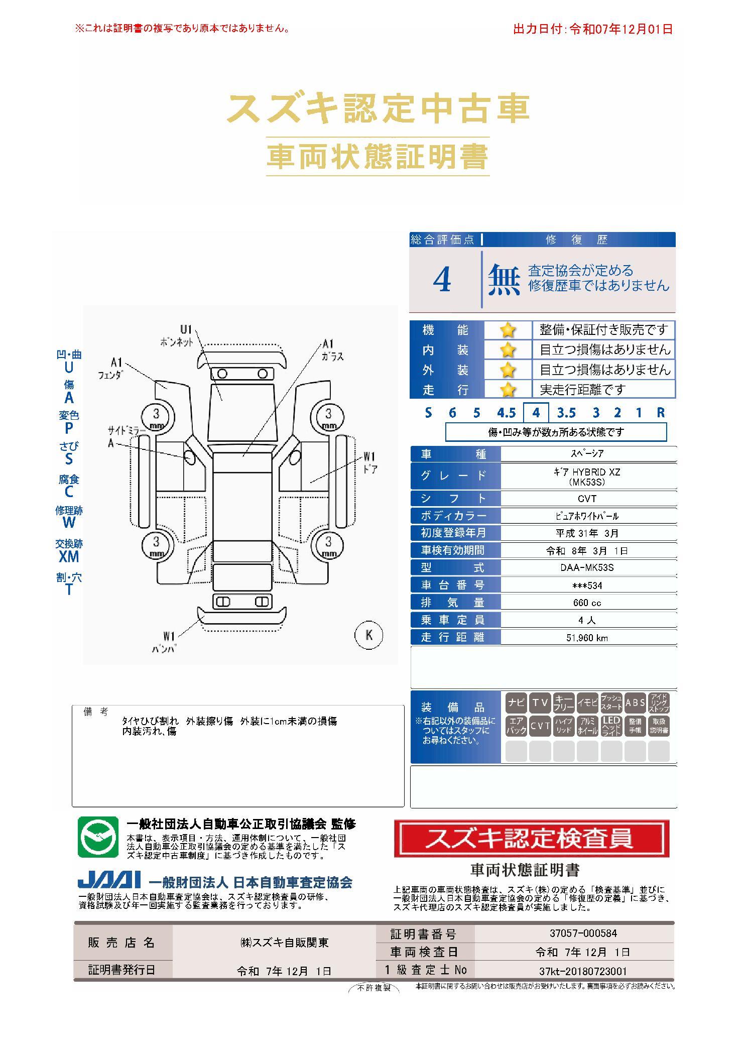 | 車両状態評価書 | ※クリックすると開きます![]() |