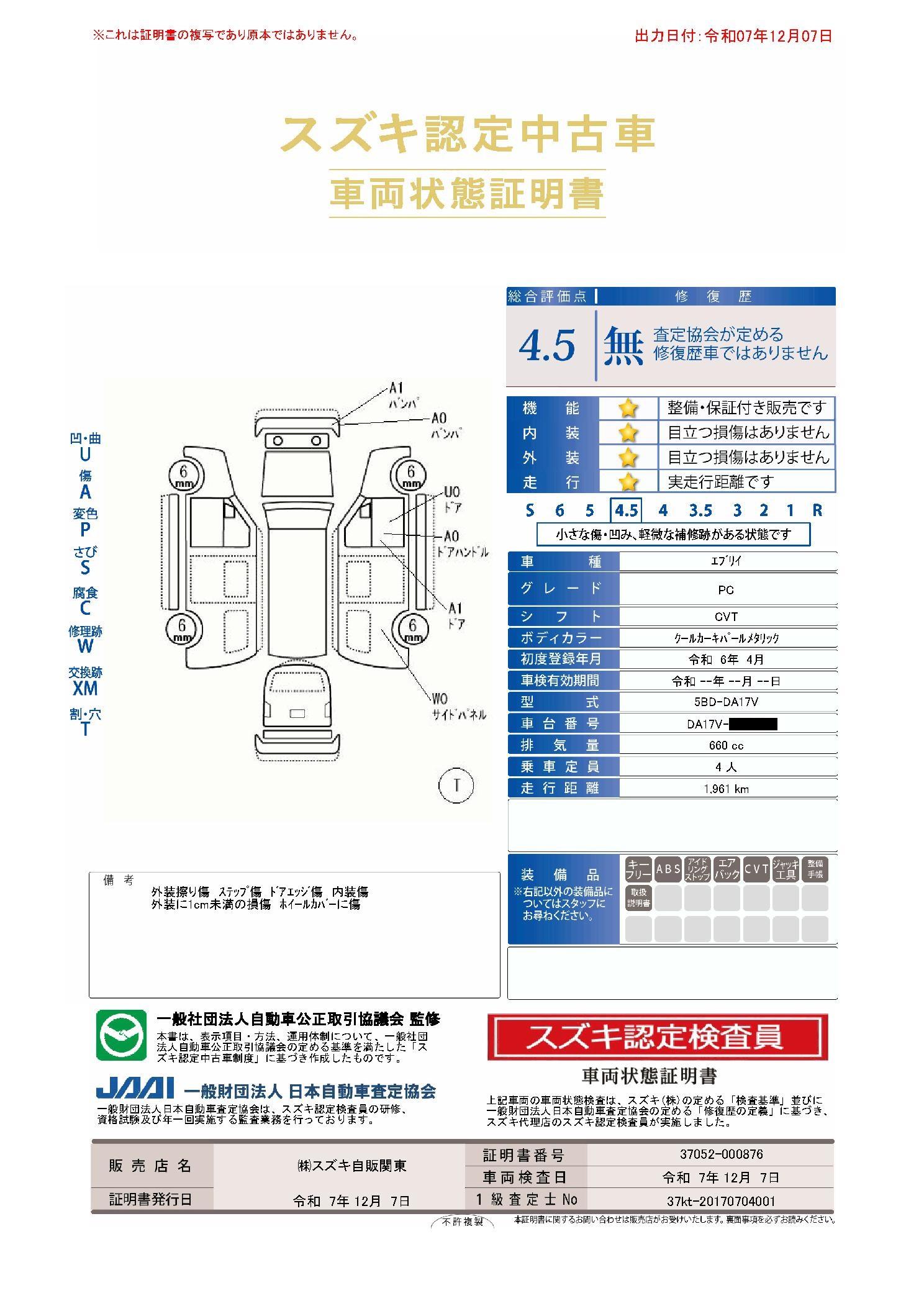 車両保証(エブリイ PC:(株)スズキ自販関東 成田営業所)