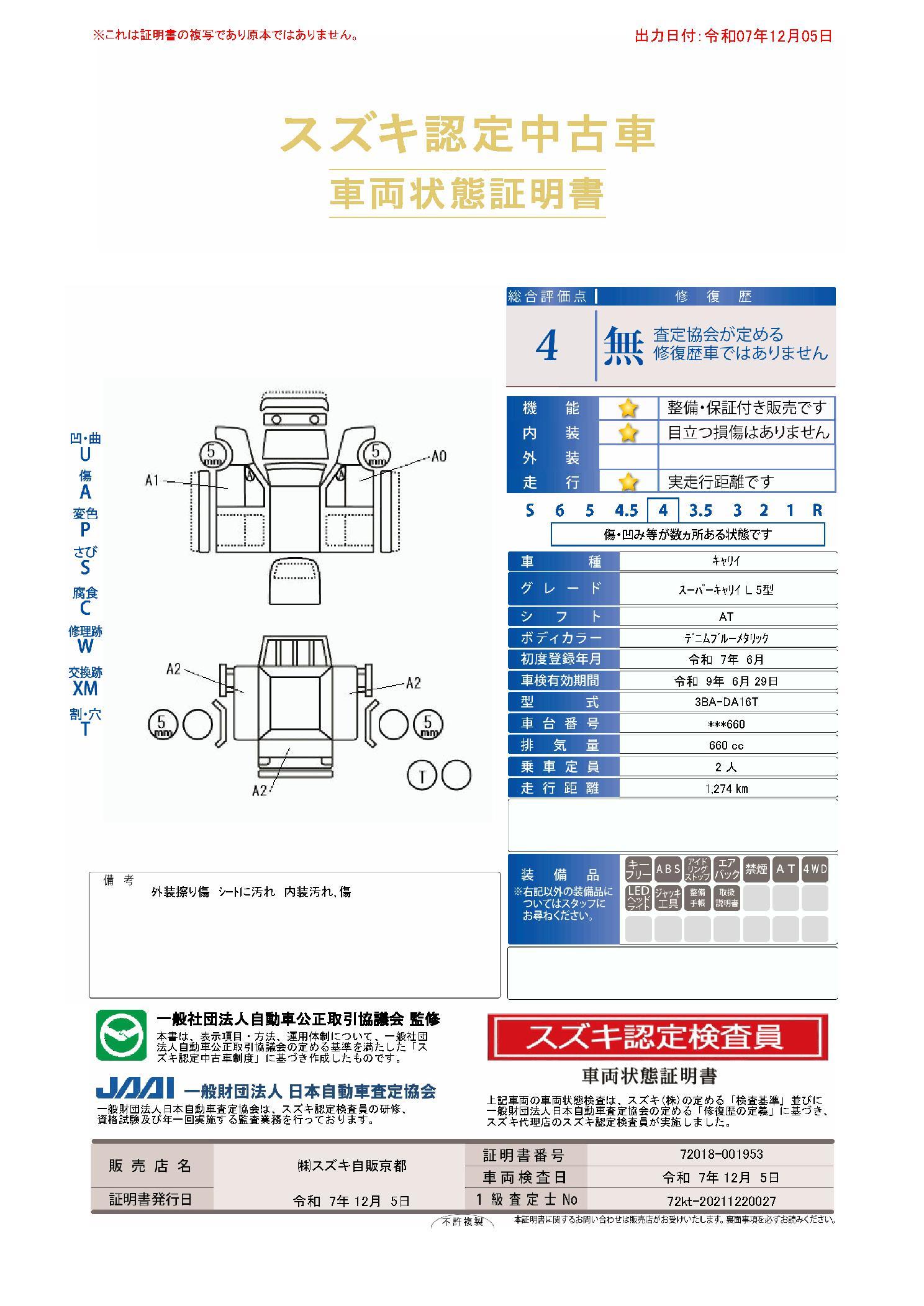 車両保証(スーパーキャリイ L:(株)スズキ自販京都 スズキアリーナ城陽)