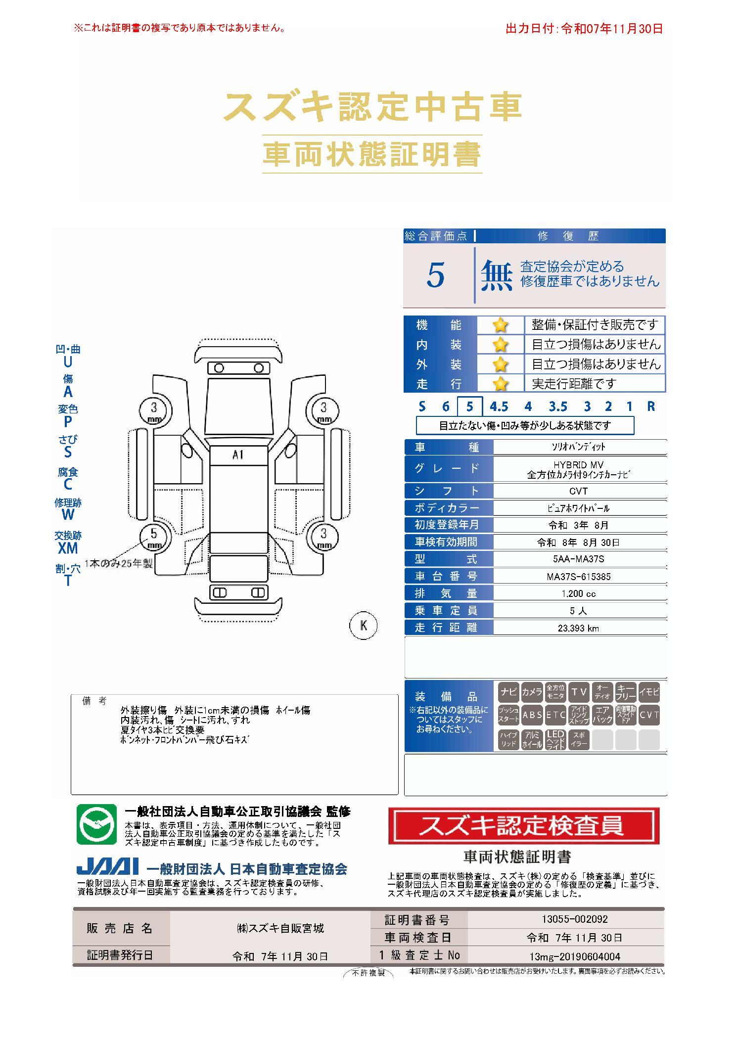 | 車両状態評価書 | ※クリックすると開きます![]() |