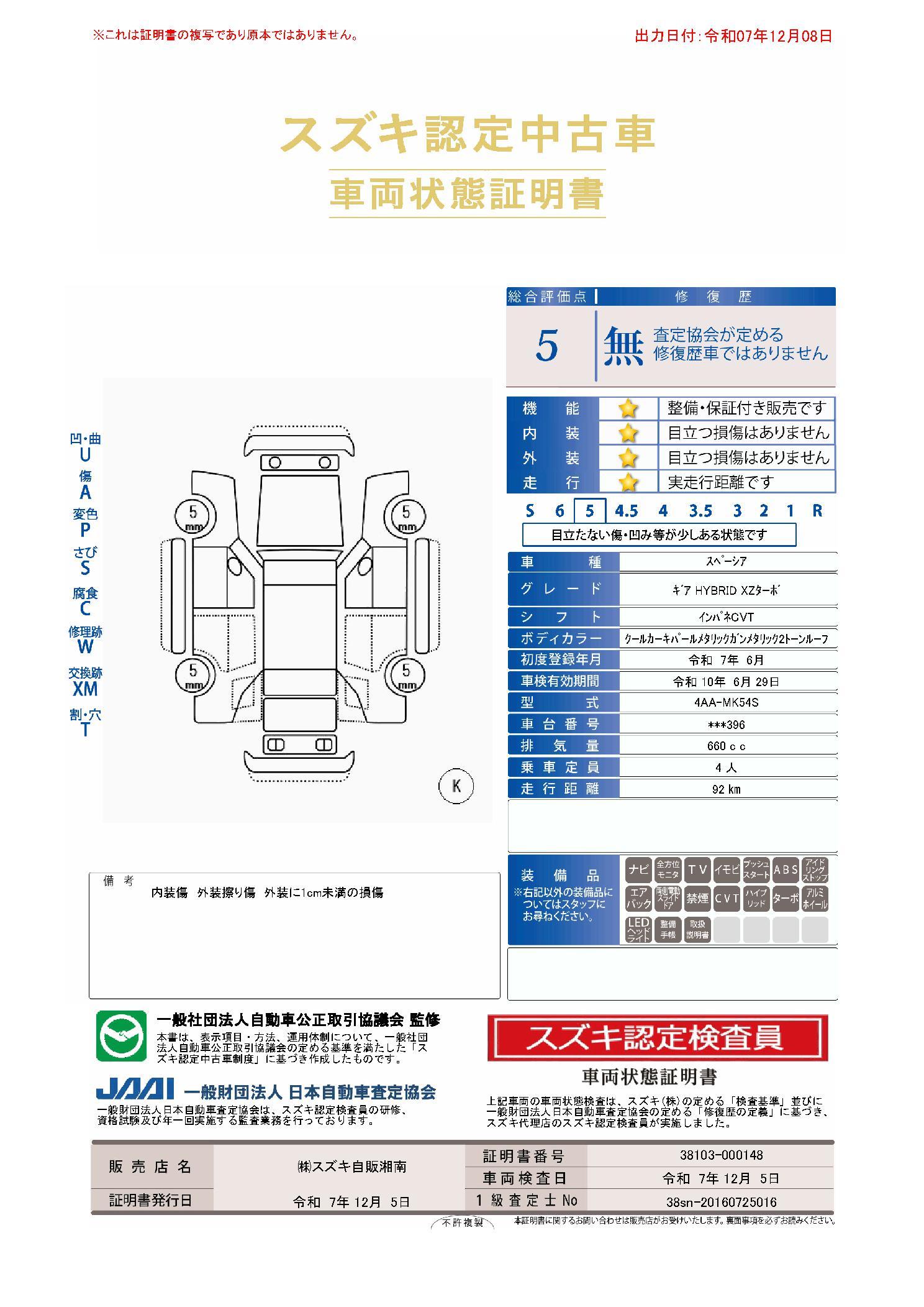 車両保証(スペーシア その他/独自仕様/表記なし:(株)スズキ自販湘南 スズキアリーナ湘南はしもと)