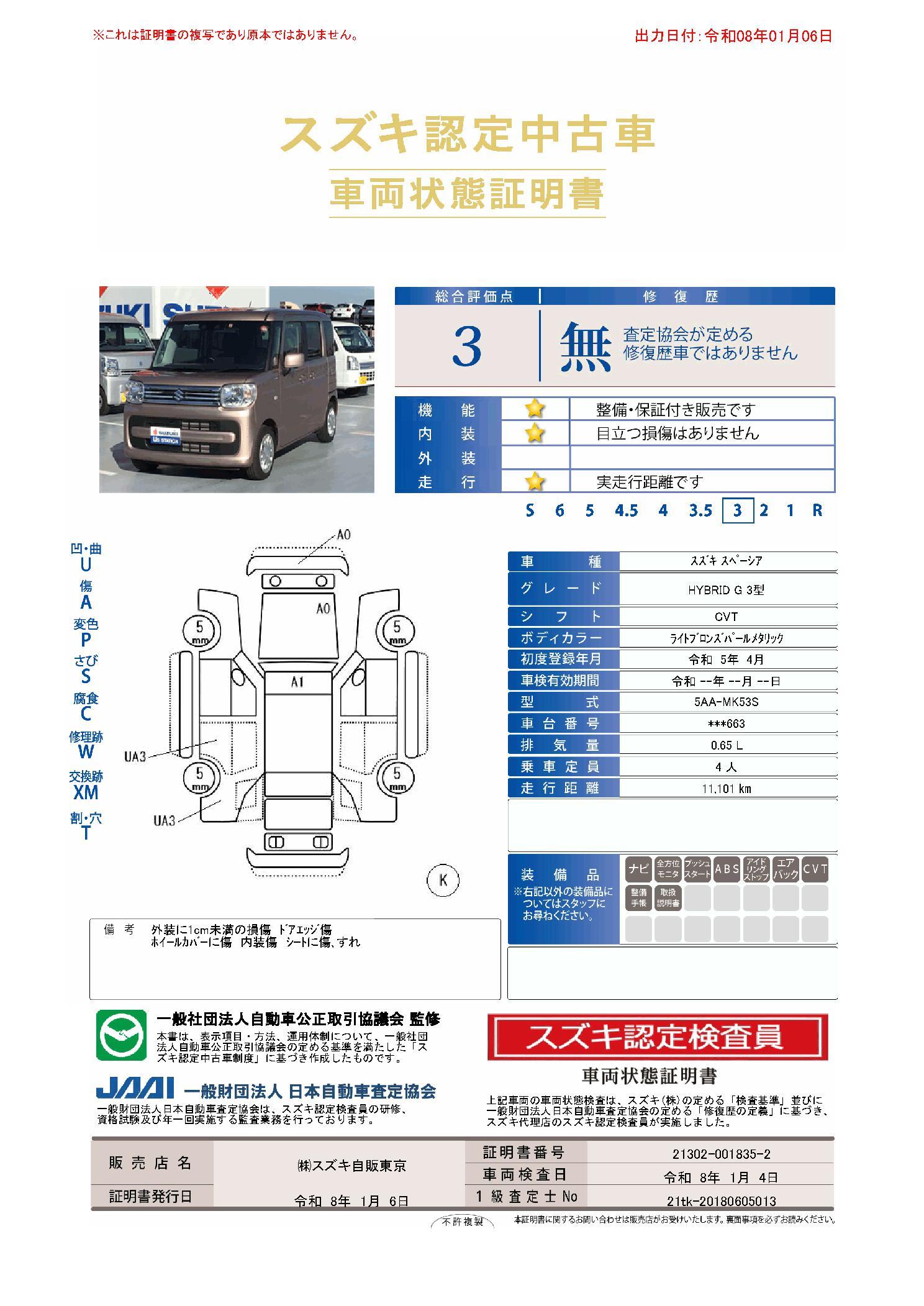 車両保証(スペーシア ハイブリッドG:(株)スズキ自販東京 スズキアリーナ世田谷)