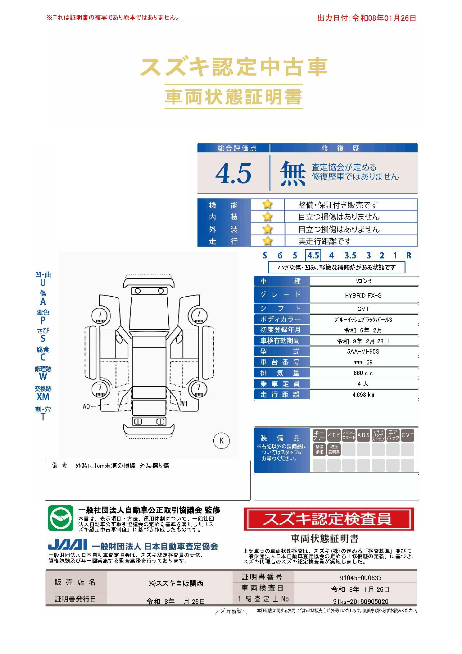 車両保証(ワゴンR ハイブリッドFX-S:(株)スズキ自販関西 スズキアリーナ福重)