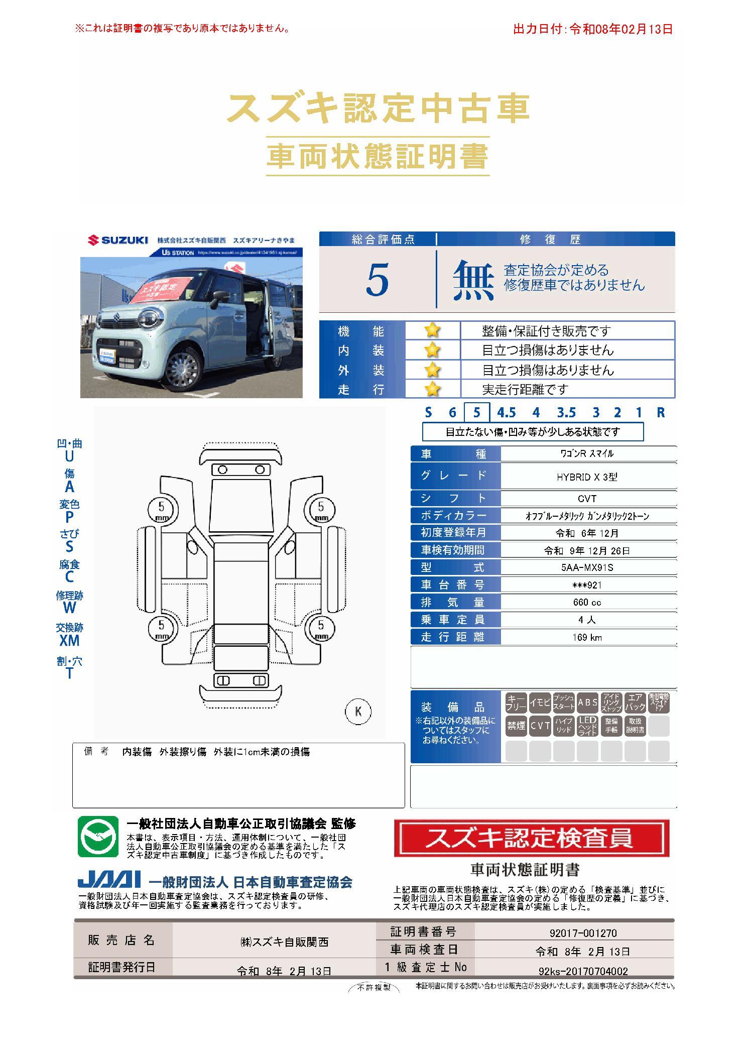 | 車両状態評価書 | ※クリックすると開きます![]() |