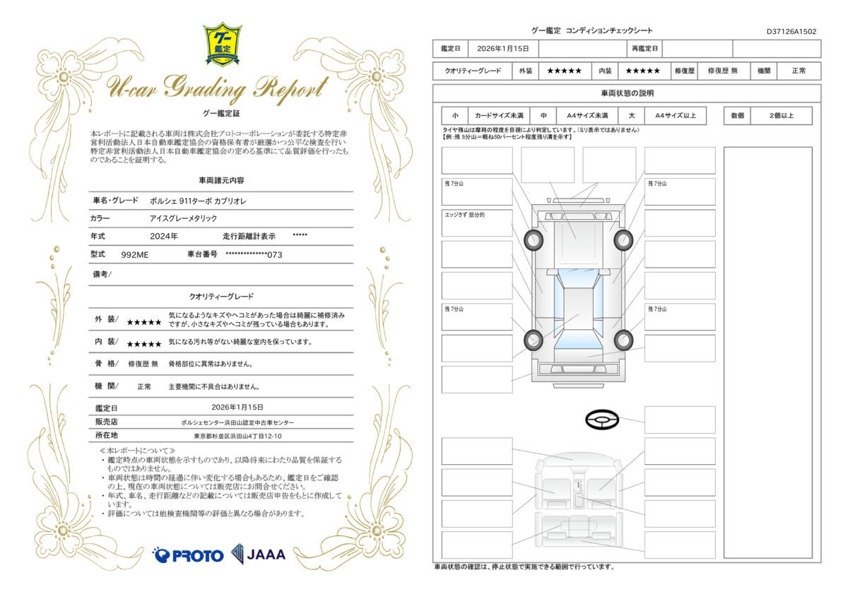| 車両状態評価書 | ※クリックすると開きます![]() |