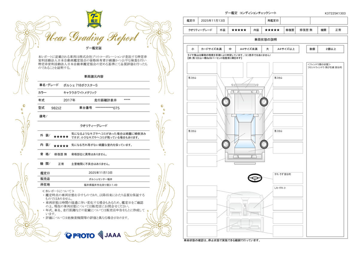 車両状態(718ボクスター 718ボクスターS)