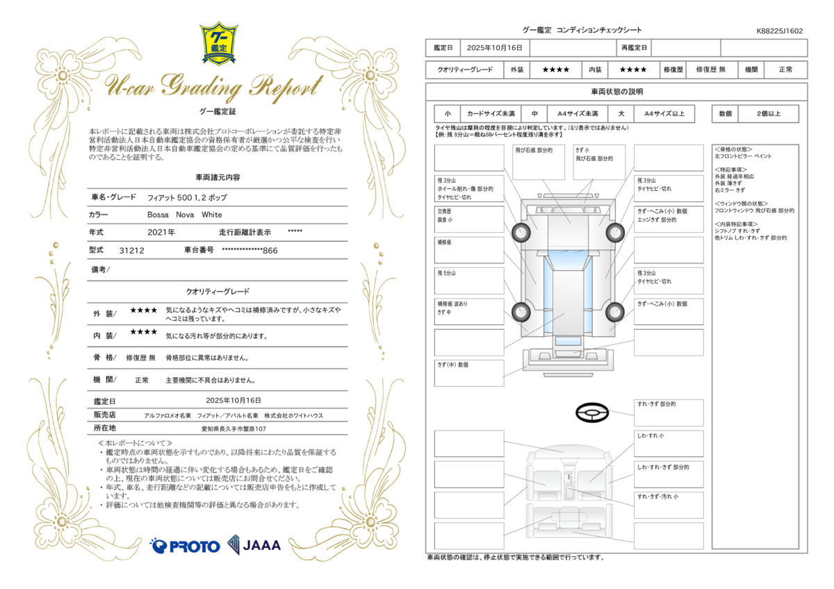 車両保証(500 1.2 ポップ:アルファ ロメオ名東 フィアット/アバルト名東 株式会社ホワイトハウス)