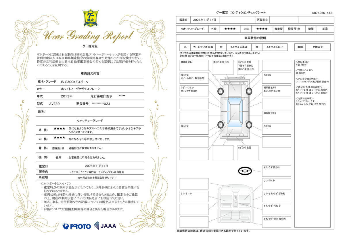 車両保証(IS IS300h Fスポーツ:レクサス/クラウン専門店 ファイントラスト各務原店)
