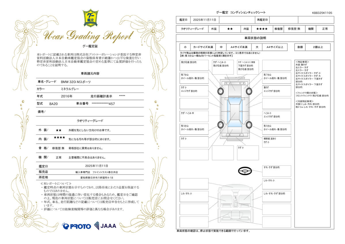 | 車両状態評価書 | ※クリックすると開きます![]() |
