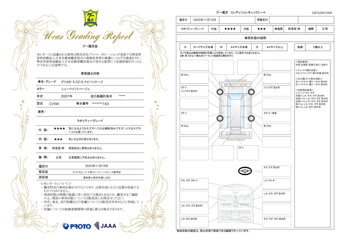 | 車両状態評価書 | ※クリックすると開きます![]() |