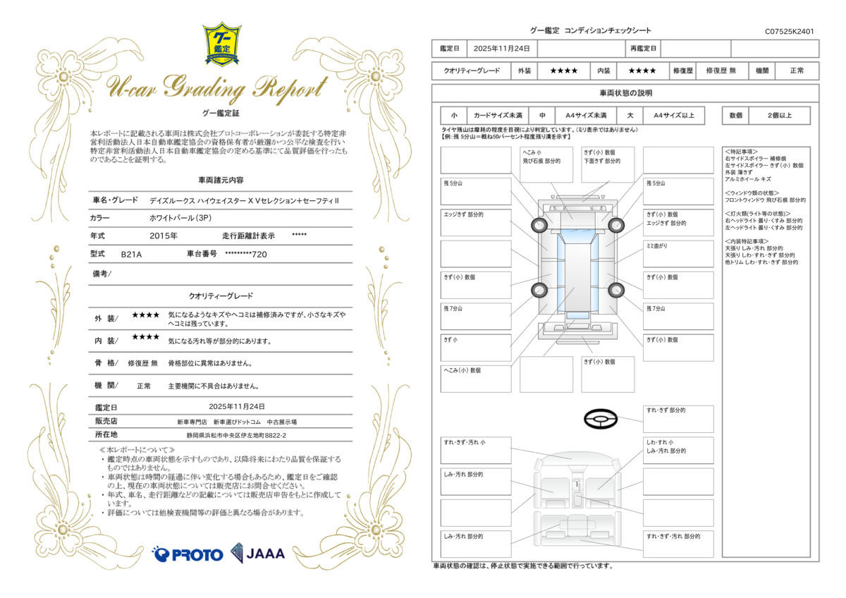 | 車両状態評価書 | ※クリックすると開きます![]() |