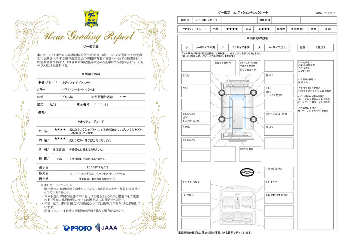 | 車両状態評価書 | ※クリックすると開きます![]() |