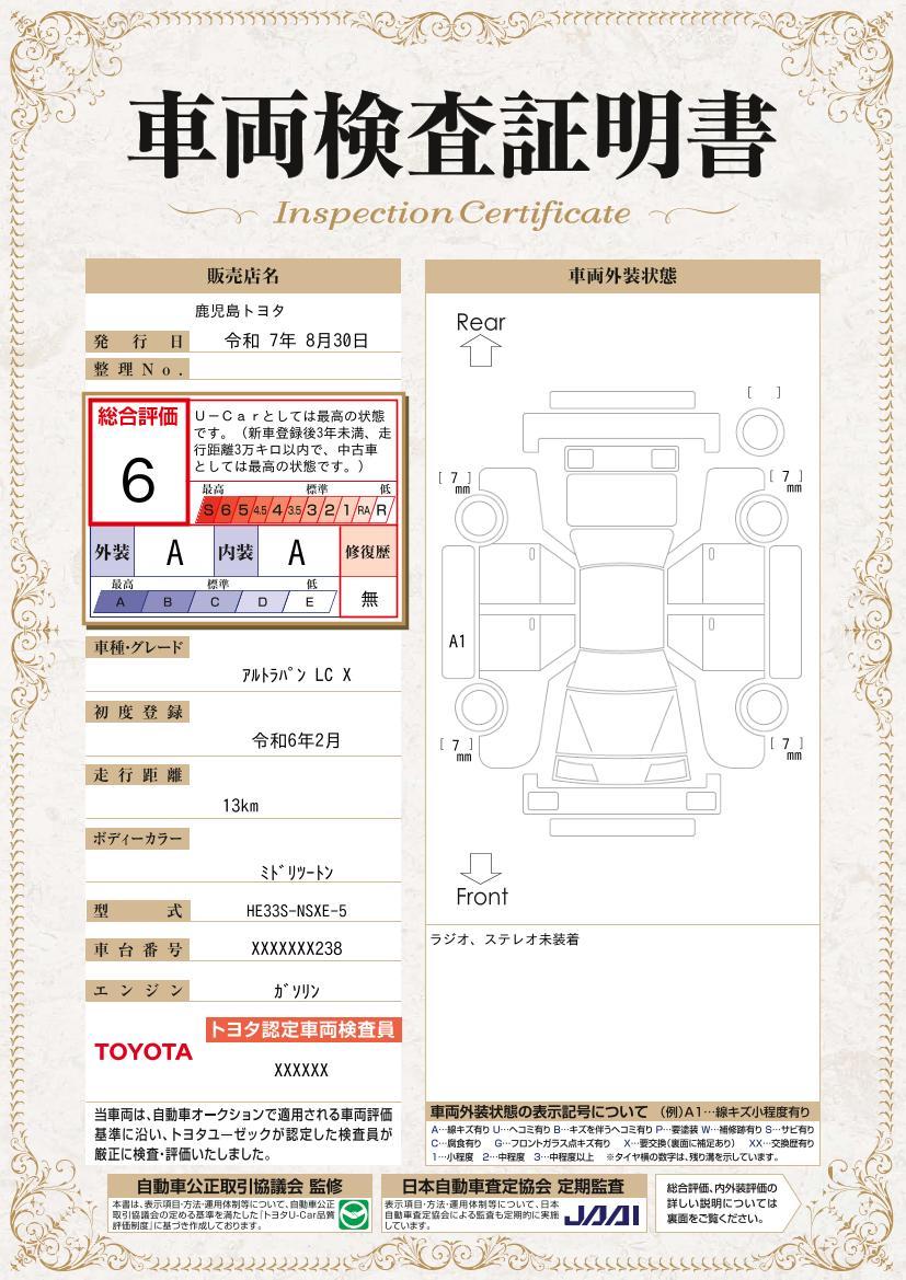 車両保証(アルトラパンLC X:鹿児島トヨタ自動車(株)グリーンフィールド川内)