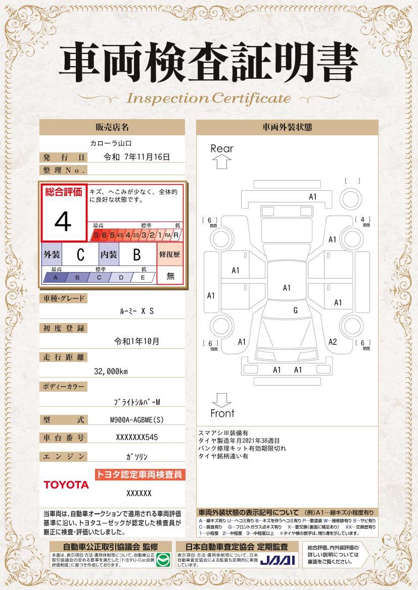 車両保証(ルーミー X S:トヨタカローラ山口(株) 下関マイカーセンター)