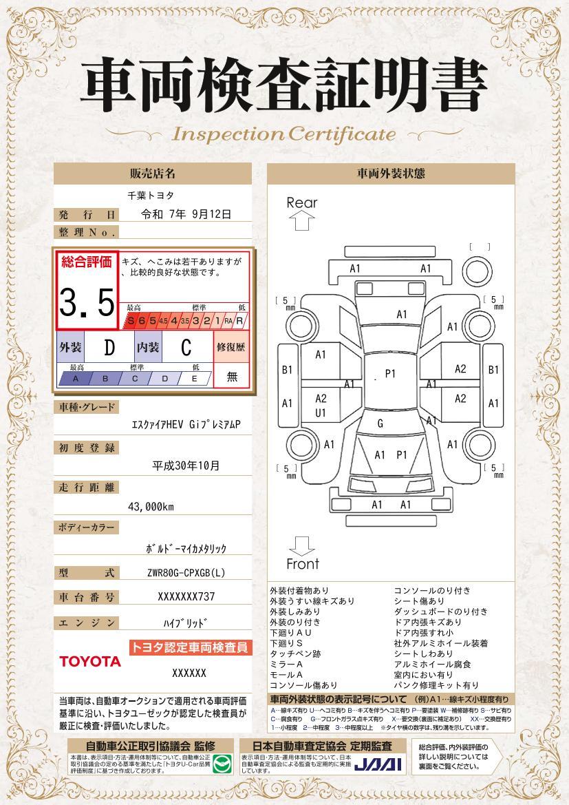 車両状態(エスクァイア ハイブリッドGi プレミアムパッケージ)