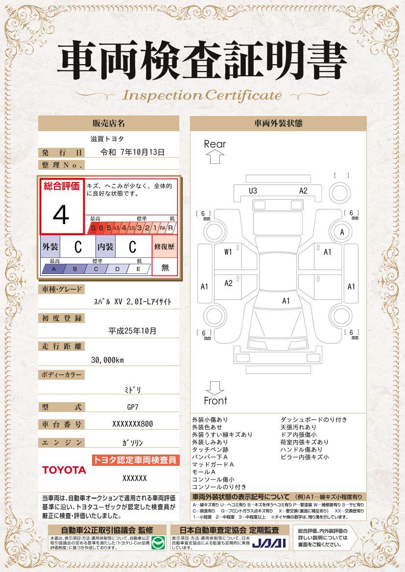車両保証(XV 2.0i-L アイサイト:(株)滋賀トヨタ 安曇川店)