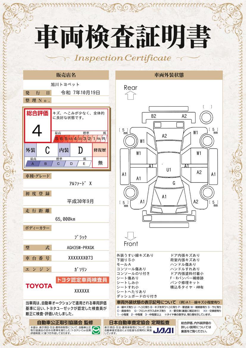 車両保証(アルファード 2.5X:旭川トヨペット(株)アクセル大雪店)
