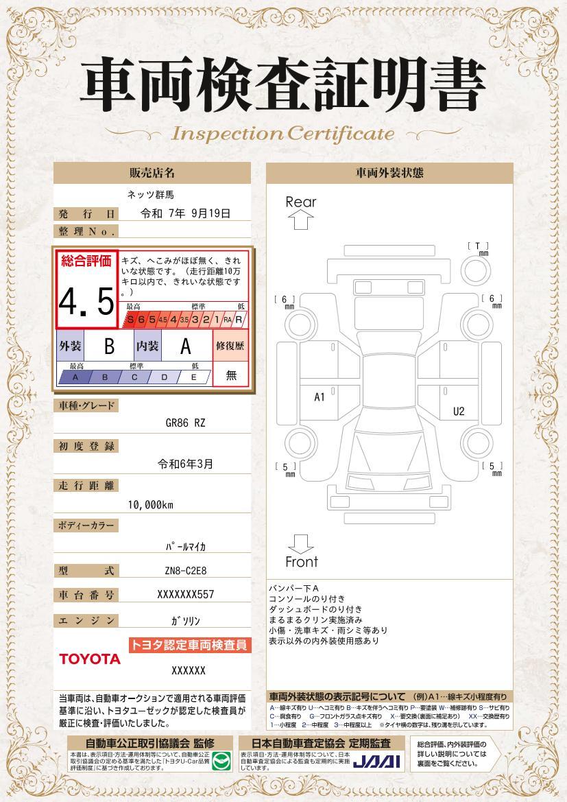 車両保証(GR86 RZ:ネッツトヨタ群馬(株)GR Garage Netz群馬 G’SPiCE)