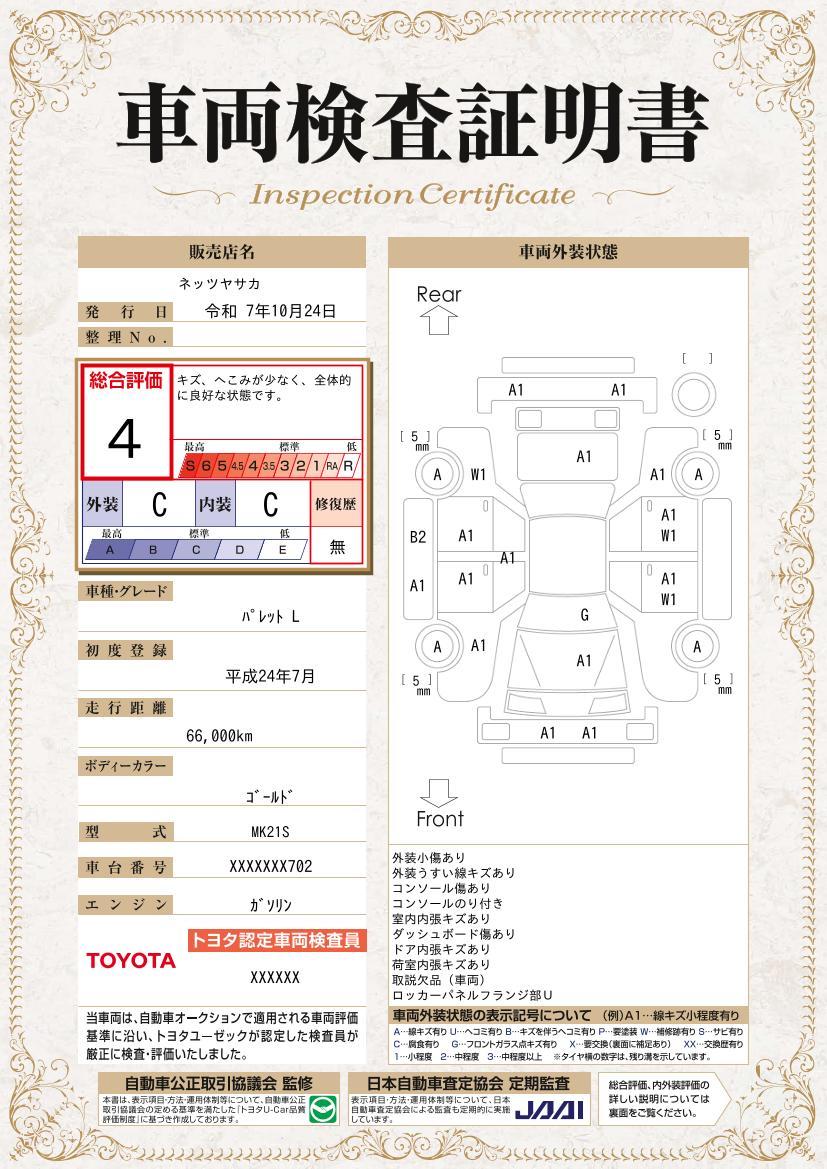 | ボディタイプ | 軽自動車 | 車台番号下3桁 | 702 |