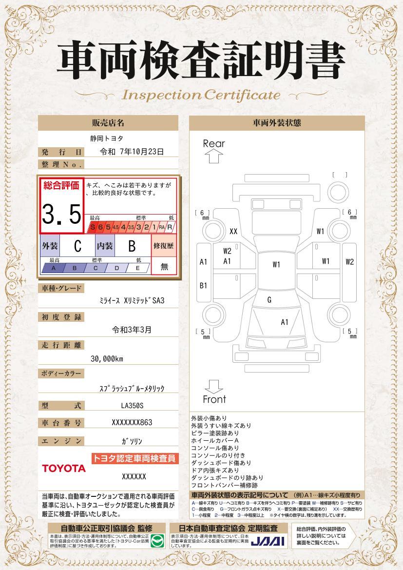 車両保証(ミライース X リミテッドSAIII:静岡トヨタ自動車 U-Car浜松南)