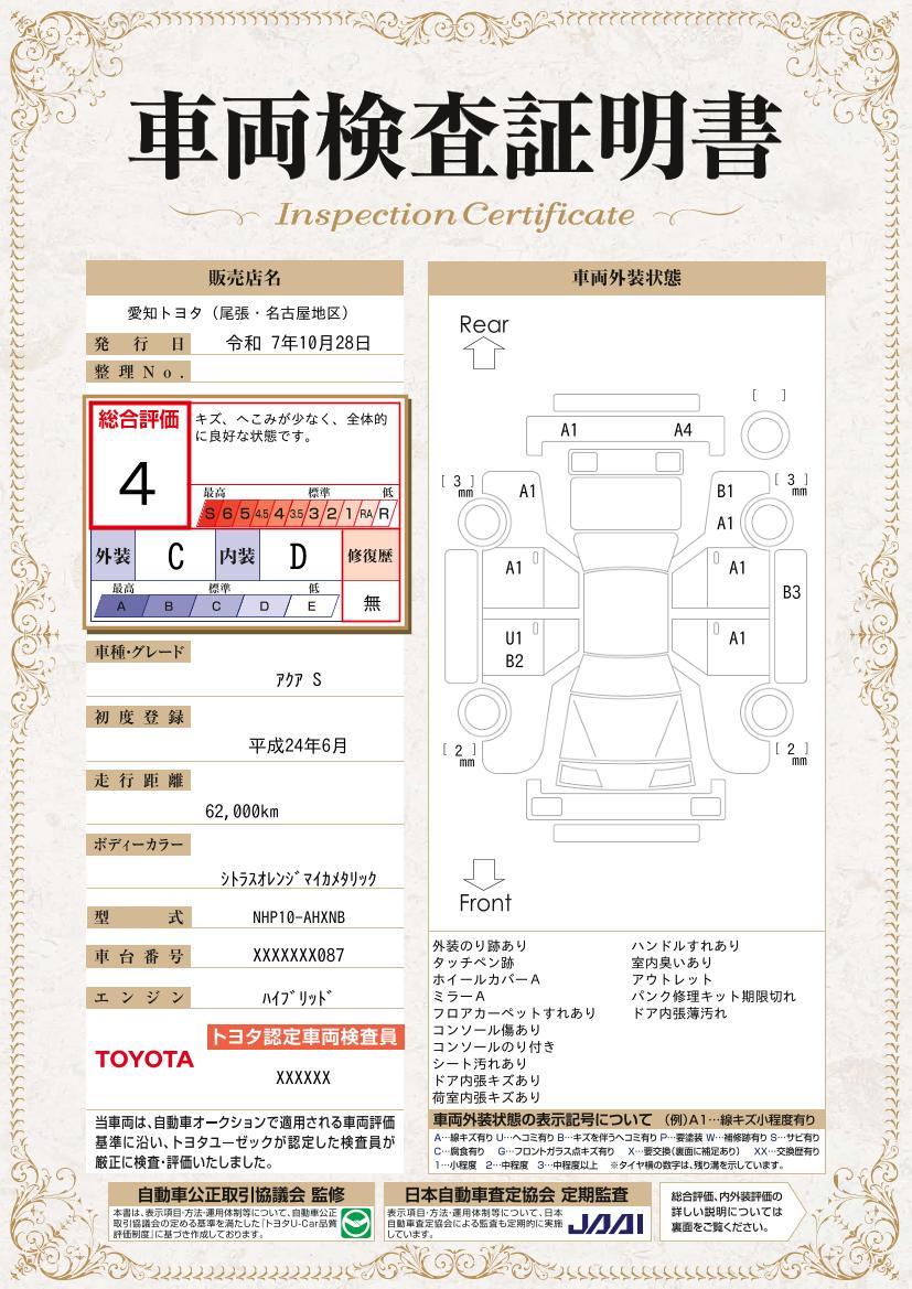 車両保証(アクア S:愛知トヨタ 島田マイカーセンター)