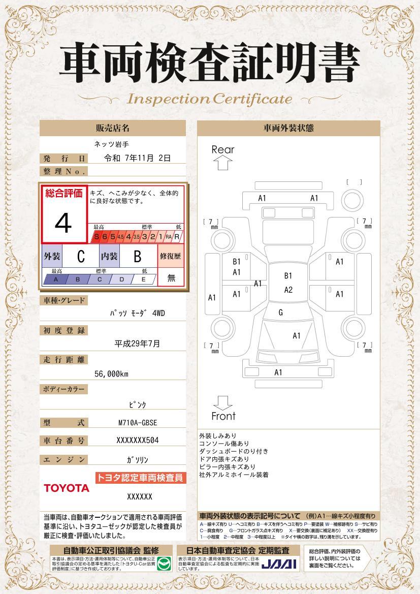 車両保証(パッソ モーダ:ネッツトヨタ岩手(株) 本社中古車センター)