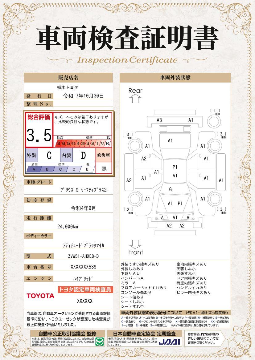 車両保証(プリウス SセーフティプラスII:栃木トヨタ自動車(株)U-Car小山羽川店)