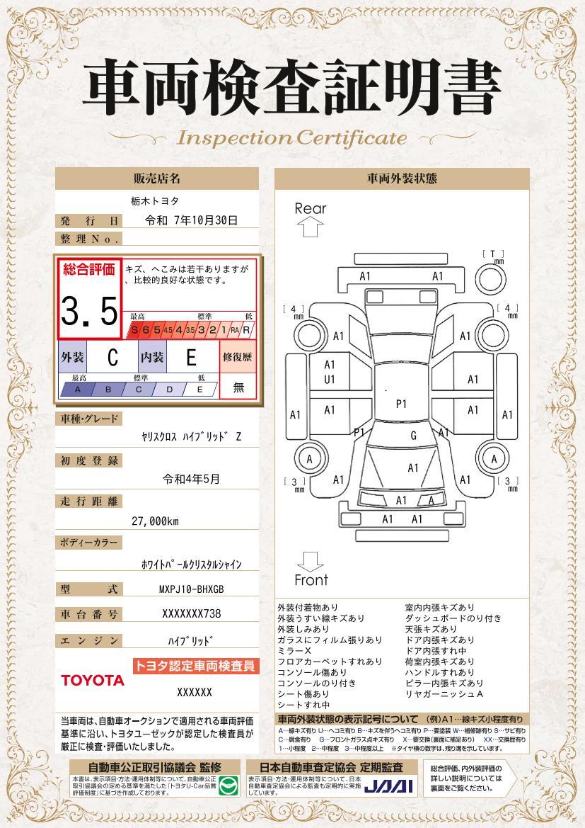車両保証(ヤリスクロス ハイブリッドZ:栃木トヨタ自動車(株)U-Carインターパーク店)