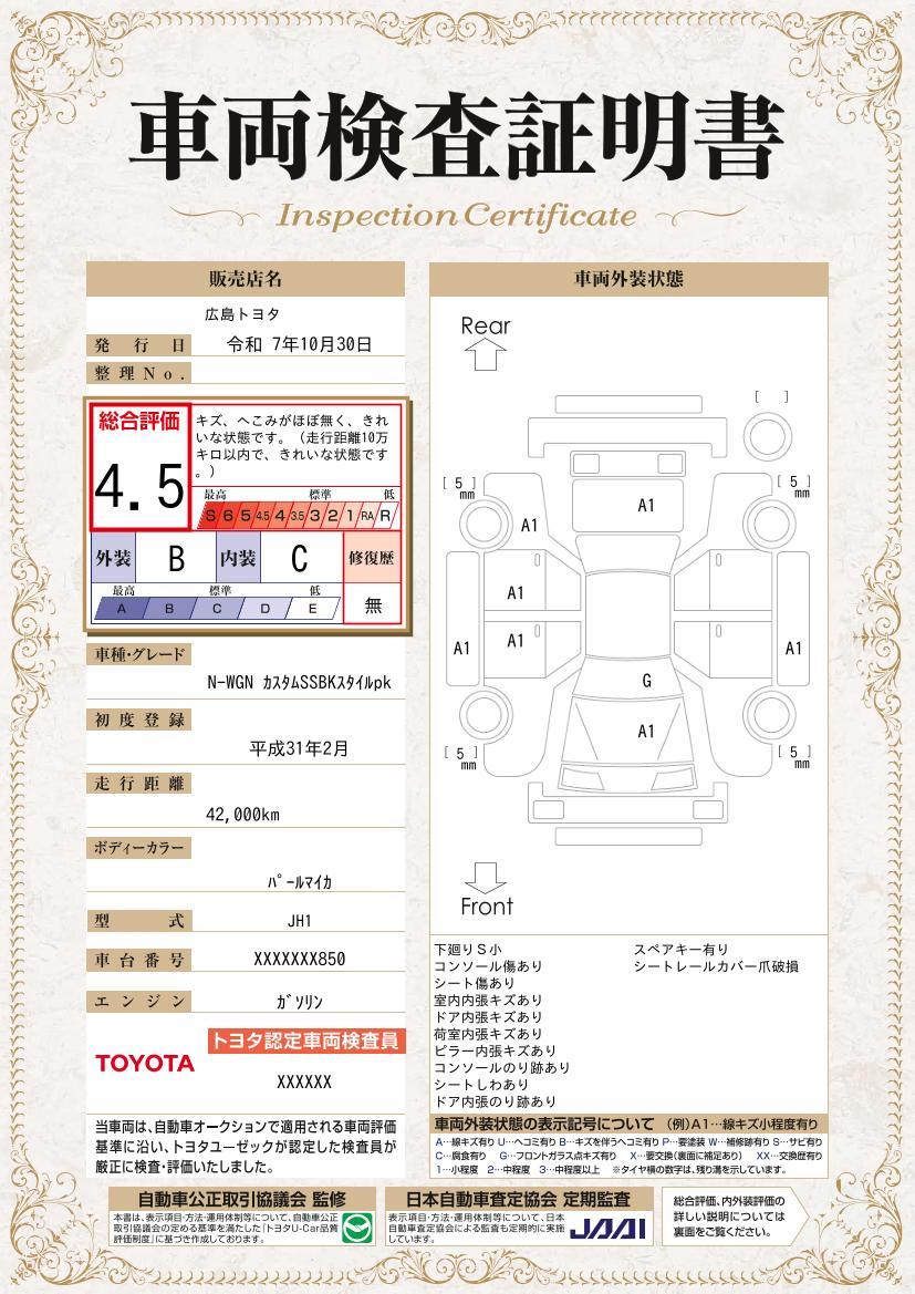 車両保証(N-WGNカスタム G SSブラックスタイルパッケージ:広島トヨタ自動車 福山北店)