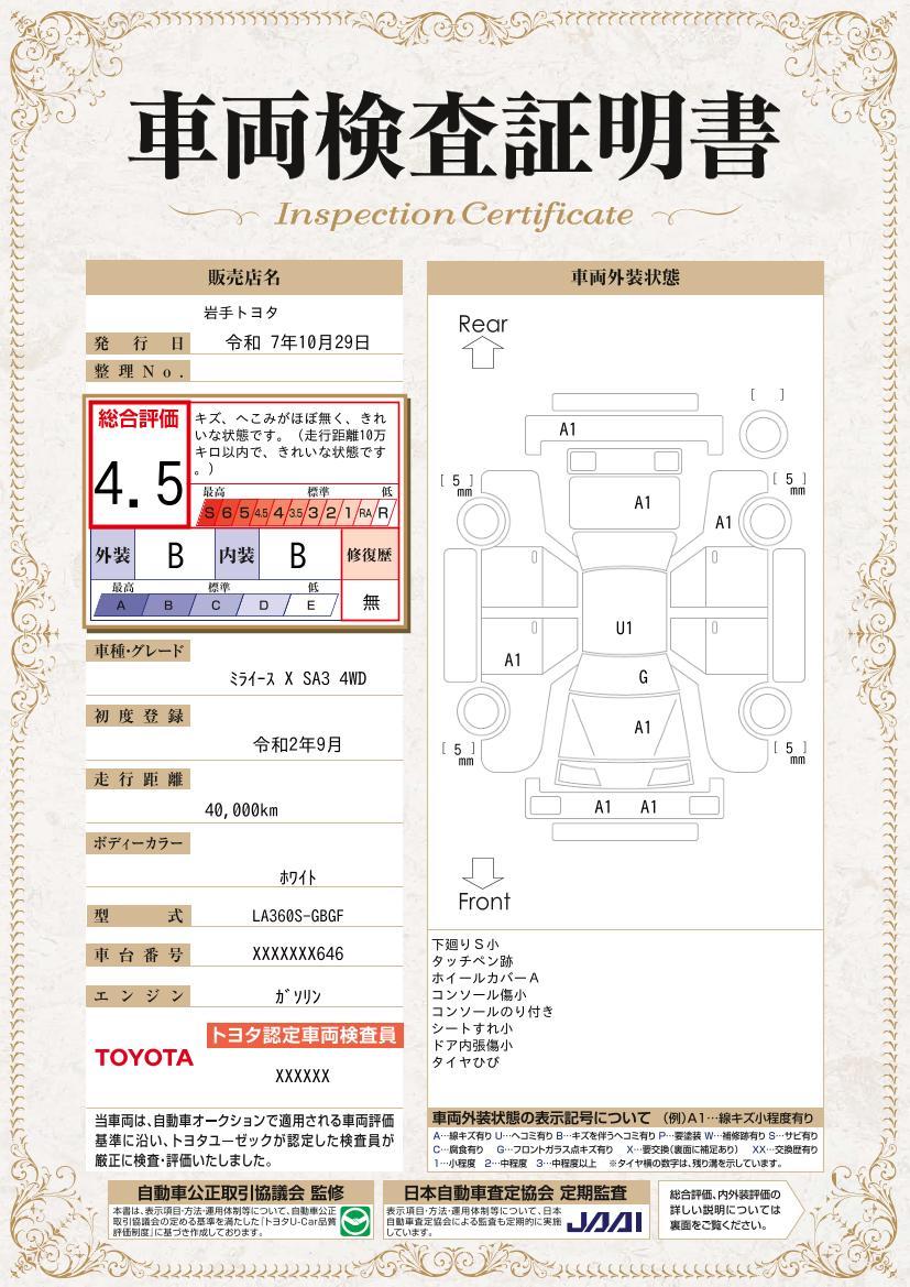 車両保証(ミライース X SAIII:岩手トヨタ自動車(株) 花巻店)