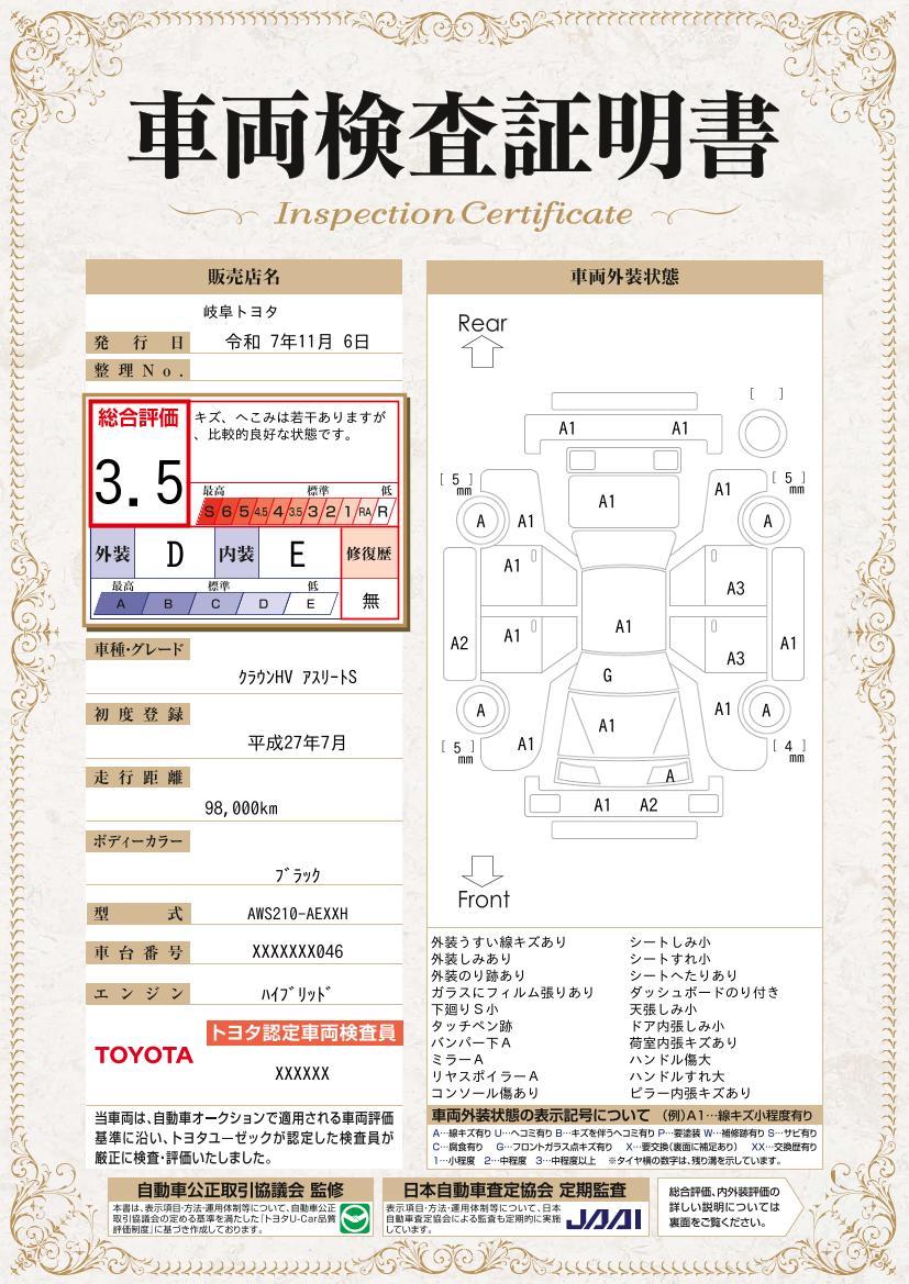 車両保証(クラウンハイブリッド アスリートS:岐阜トヨタ自動車 U-Car関稲口店)
