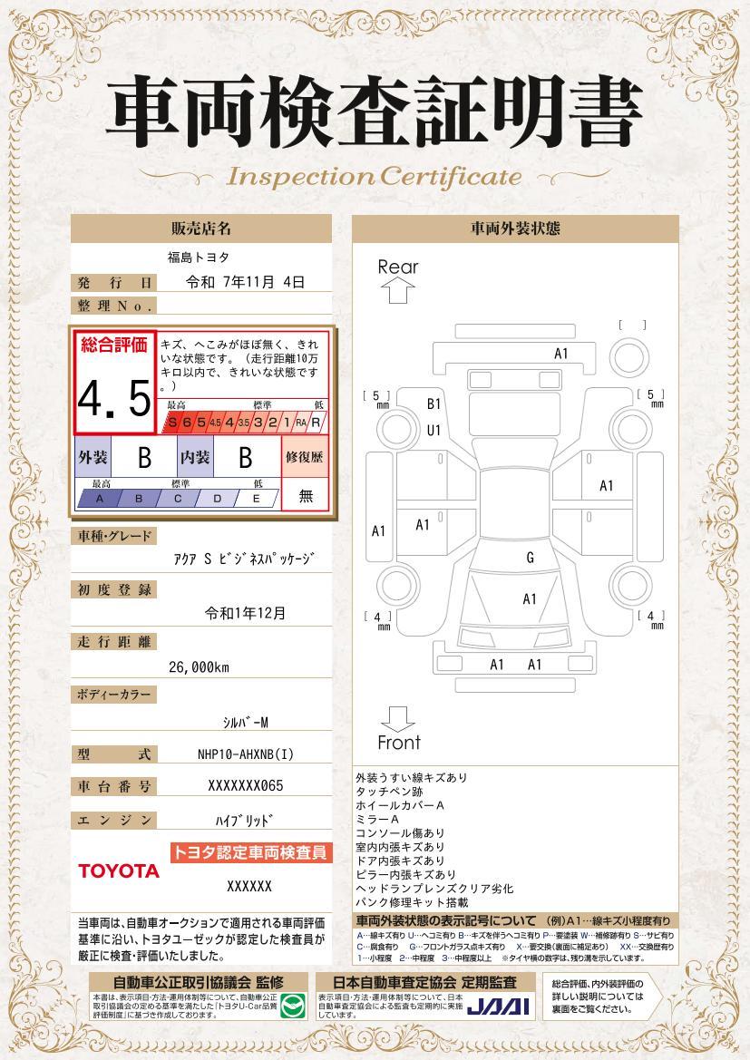 車両保証(アクア Sビジネスパッケージ:福島トヨタ自動車(株) 福島店)