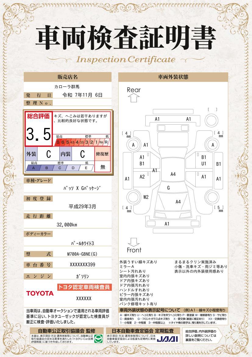 車両保証(パッソ X Gパッケージ:トヨタカローラ群馬株式会社 太田西本町店)