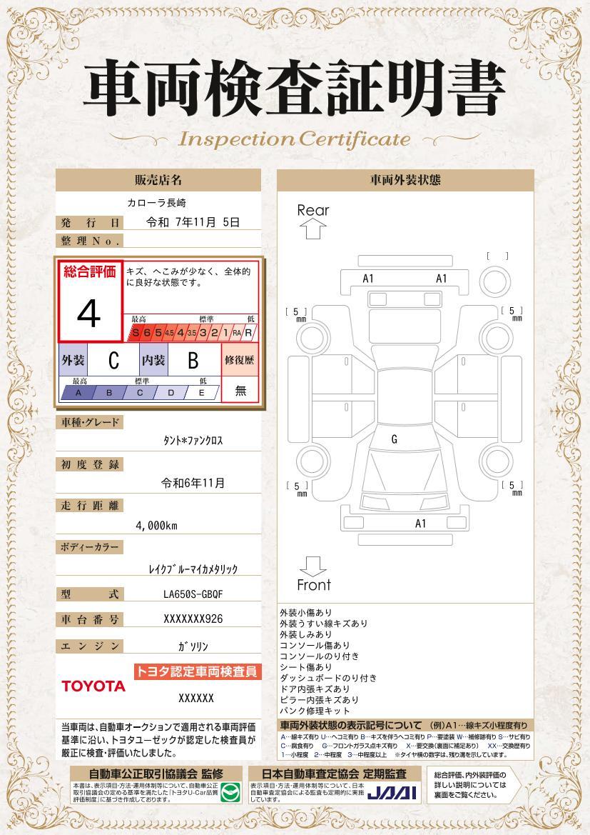 車両保証(タント ファンクロス:トヨタカローラ長崎株式会社 時津店)