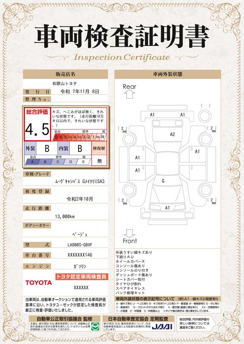 車両保証(ムーヴキャンバス Gメイクアップリミテッド SAIII:和歌山トヨタ自動車(株) 有田店)