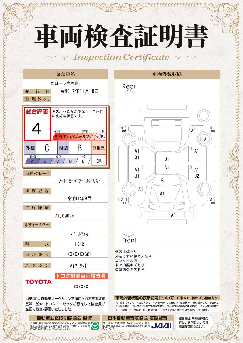 車両保証(ノート e-パワー メダリスト:トヨタカローラ鹿児島(株)川内マイカーセンター)